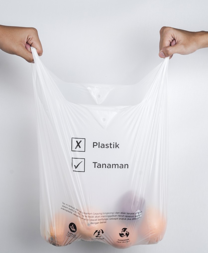 Our basic cassava bags t-shirt are made from a bio-based polymer compound produced from cassava or corn starch, as well as vegetable oil derivatives.