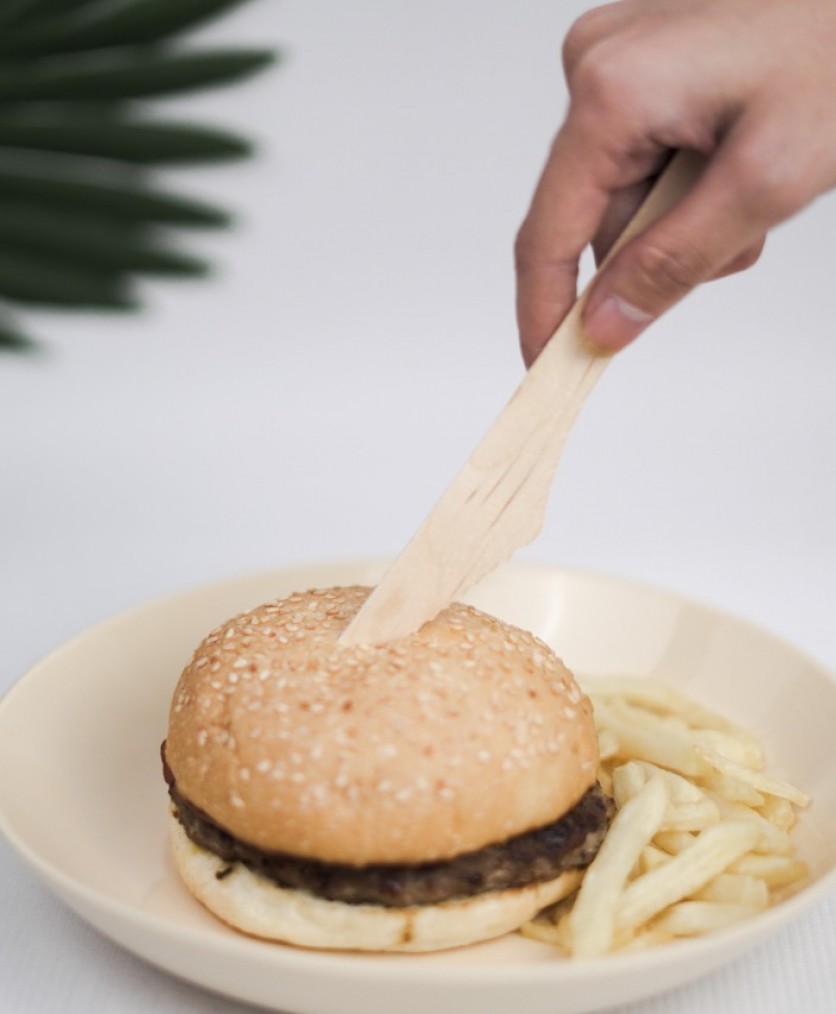Replace single-use plastic knives for good with our FDA and FSC certified wooden knives.
